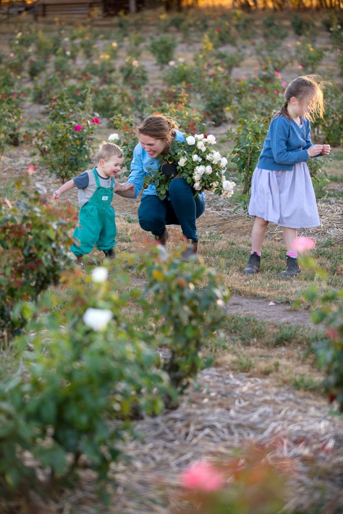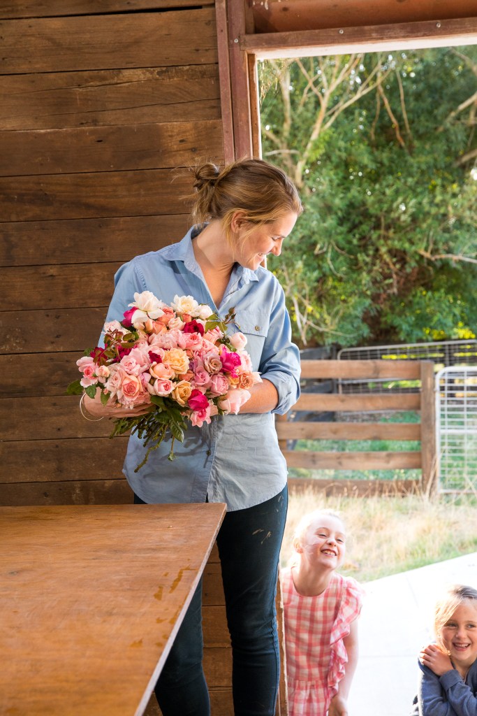 “Being farmers we tend to always be at work in some way, there is never not work to be done and you can get caught up in that. I love working with my children along side me, they make potpourri with our left over roses, fill up buckets and chatter about their very big business plans. They make pretty little arrangements with foraged bits and the roses that haven’t made the cut to go to market, they don’t over think it, they just pick the colours they love, and it is pure joy for me to watch!” Kristy says.