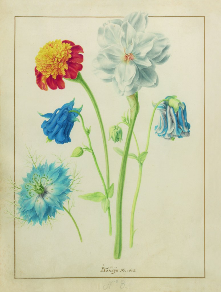 2. Jacques de Gheyn II, Five Flowers, from an album of 22 drawings of flowers, insects and animals, 1602.