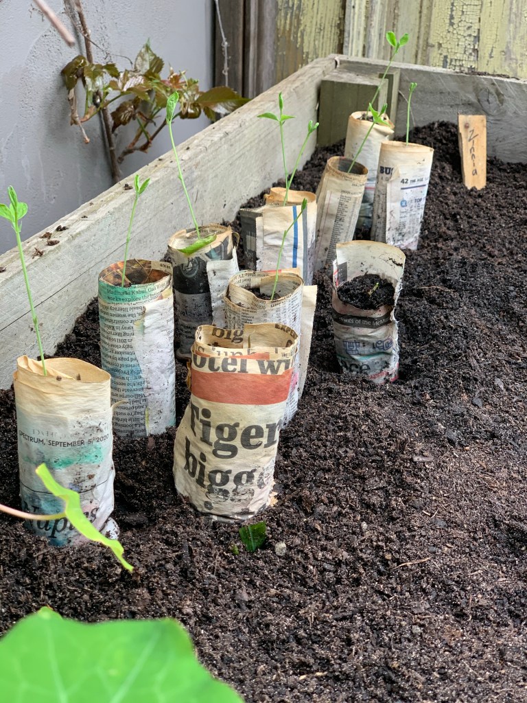 So growing flowers became the long term goal. Planting seeds – our daily project. We tried egg cartons, homemade newspaper pots and Chinese takeaway containers. Checking and watering them every day was an exercise in patience, which totally aligned with what 2020 was asking of us.