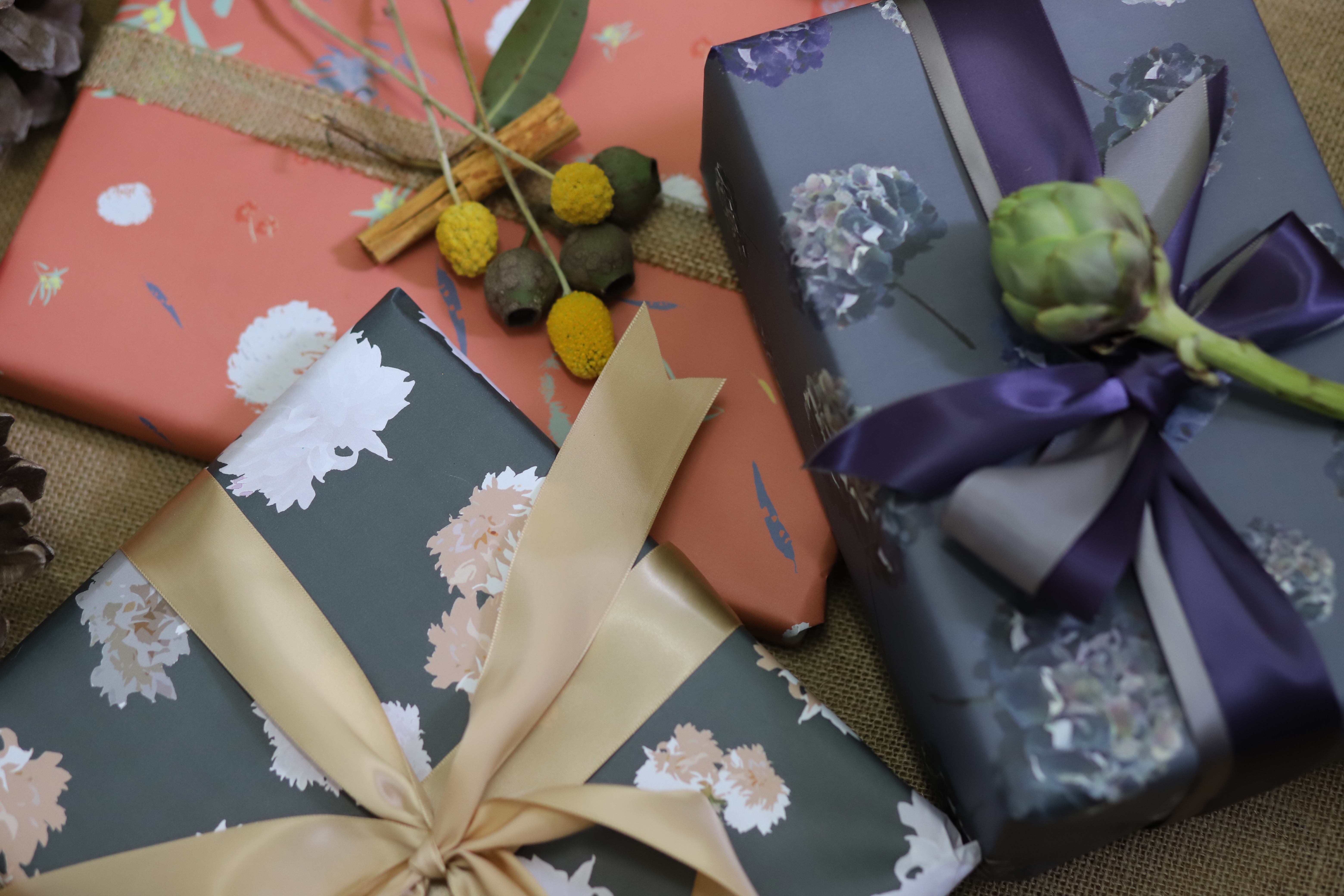 The botanical detail in these designs has been sourced and photographed by us locally. Our paper is also a friend of nature, which is always our source of inspiration. Printed in Australia, this unique Collection is reusable, recyclable and compostable.